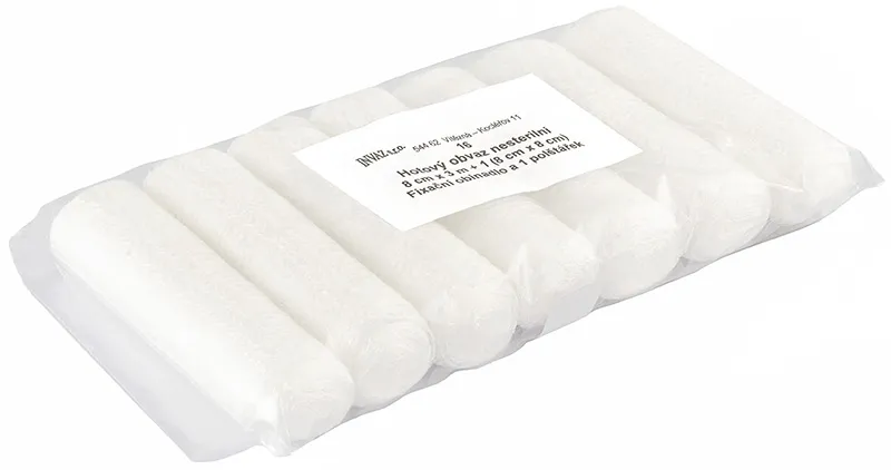 Hotový obvaz sterilní je složený ze dvou komponentů – fixačního obinadla a savého polštářku, který umožňuje přijmout značené množství tekutiny, velmi dobře kryje ránu a vytváří mikroklima.
